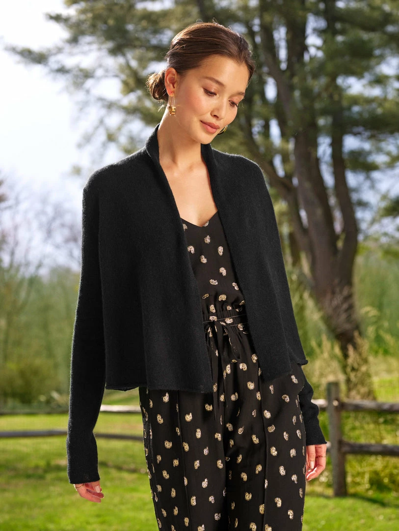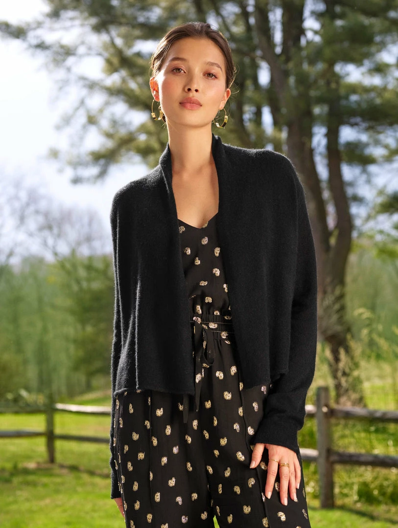 Part of our Essentials Collection, the Essential Cashmere Cropped Trapeze is a new take on our much-loved cardigan silhouette. The cropped style pairs well with high-waisted denim or pants and can easily be dressed up for a night out. The featherweight silhouette drapes beautifully, while the sleeves are more fitted.