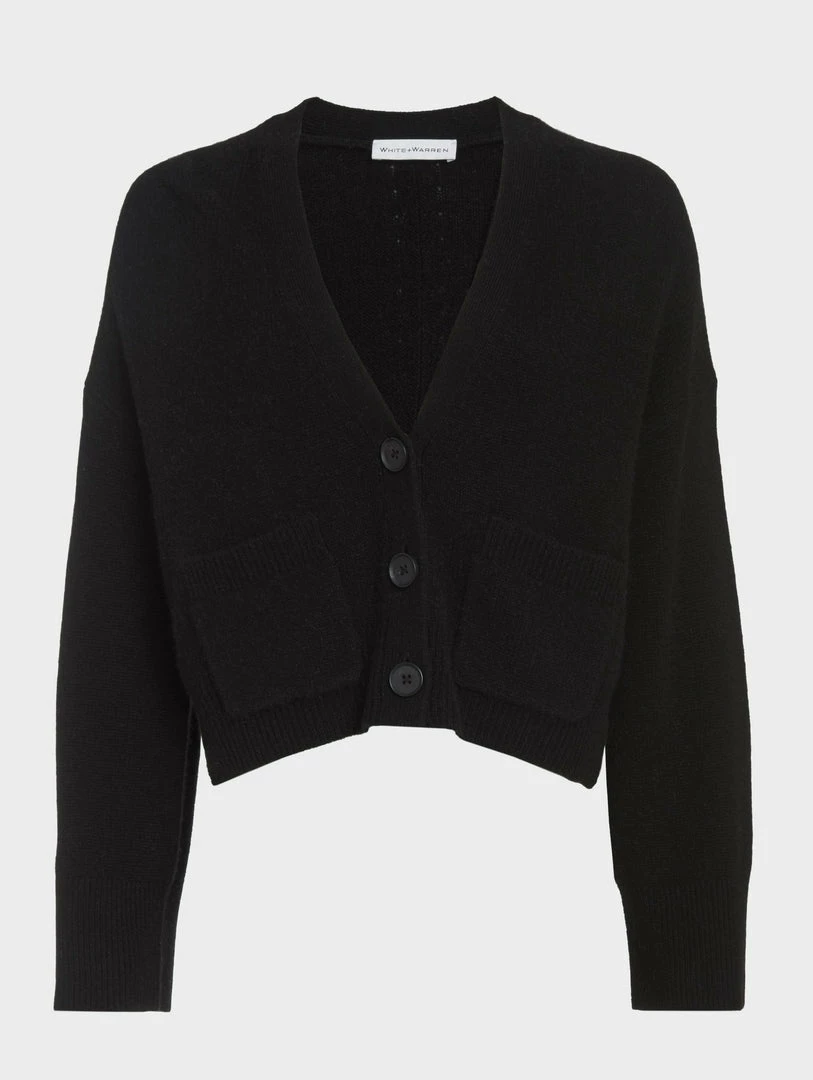 A trend seen on the runway and one to covet now, the Cashmere Cropped V Neck Cardigan presents endless styling possibilities. The cropped, roomier fit is especially flattering with high-waisted jeans or pants.