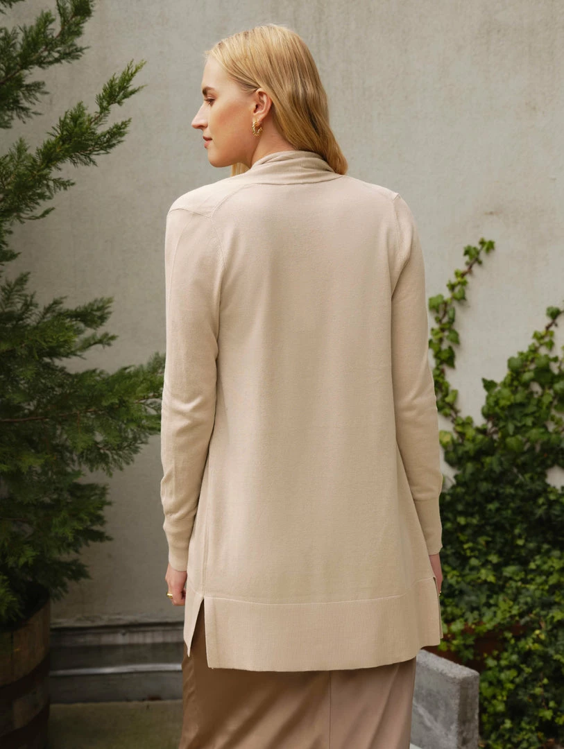 The weather outside may fluctuate but one thing on your spring fashion forecast is for certain, and that’s this open cardigan in lightweight cotton jersey. Plus, it’s knit from sustainable cottonโcotton that has passed the specifications of the Better Cotton Initiative blended with COOLMAXยฎ technology. So it will, quite literally, keep you cool and comfortable as temperatures rise.