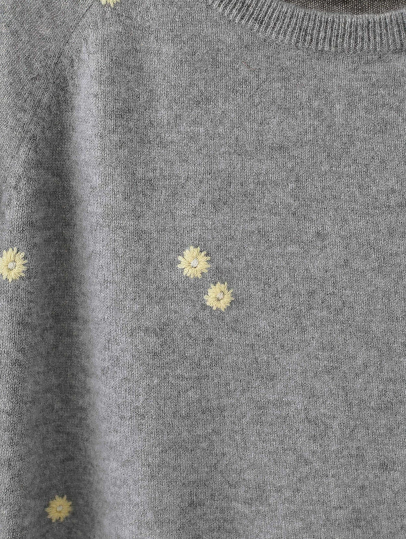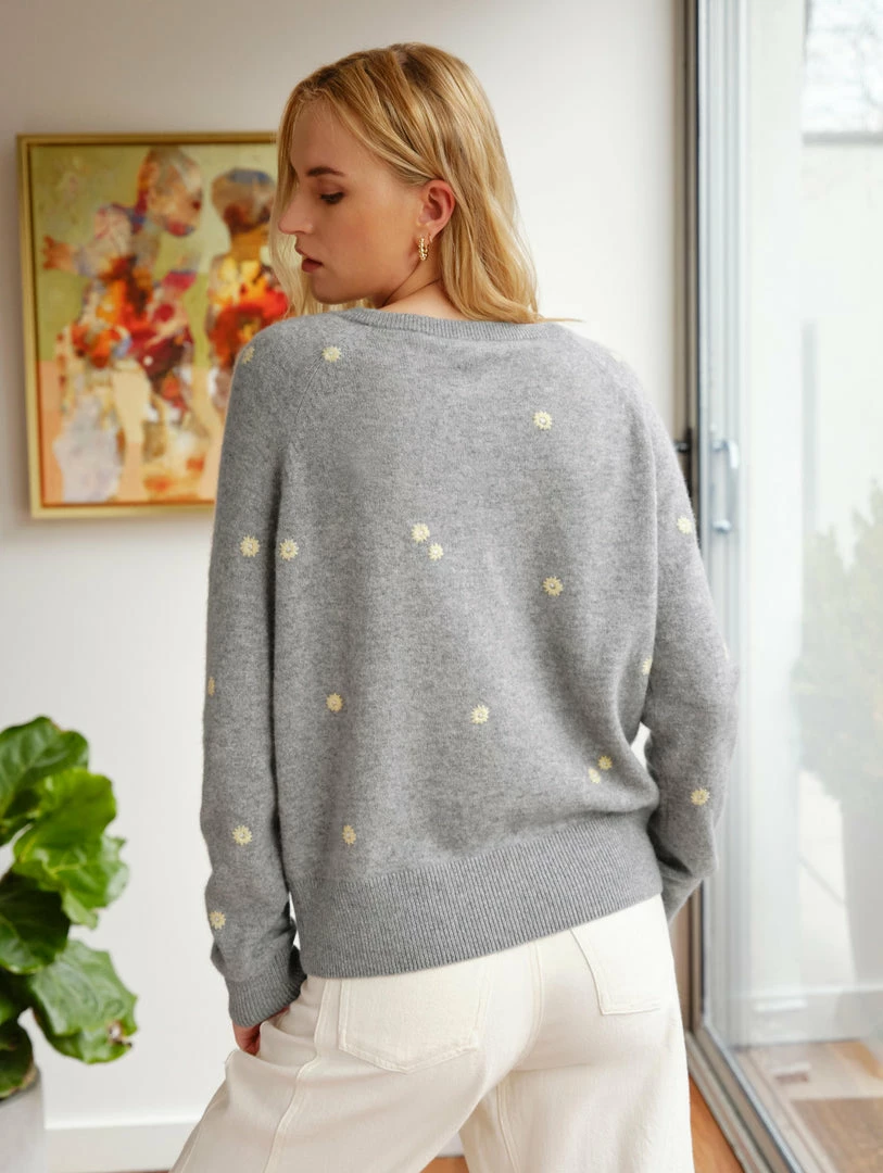 A playful twist on the flower polka dot, this latest version of our Cashmere Sweatshirt features an embroidered desert daisy motif that reads feminine. A relaxed fit and ribbing along the neckline, cuffs, and hem only add to its appeal. Keep the whimsical sweatshirt in focus by styling yours with a simple pant and sneakers.