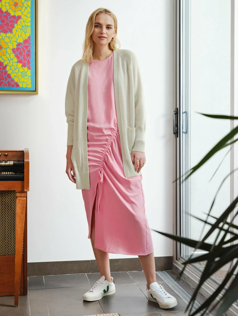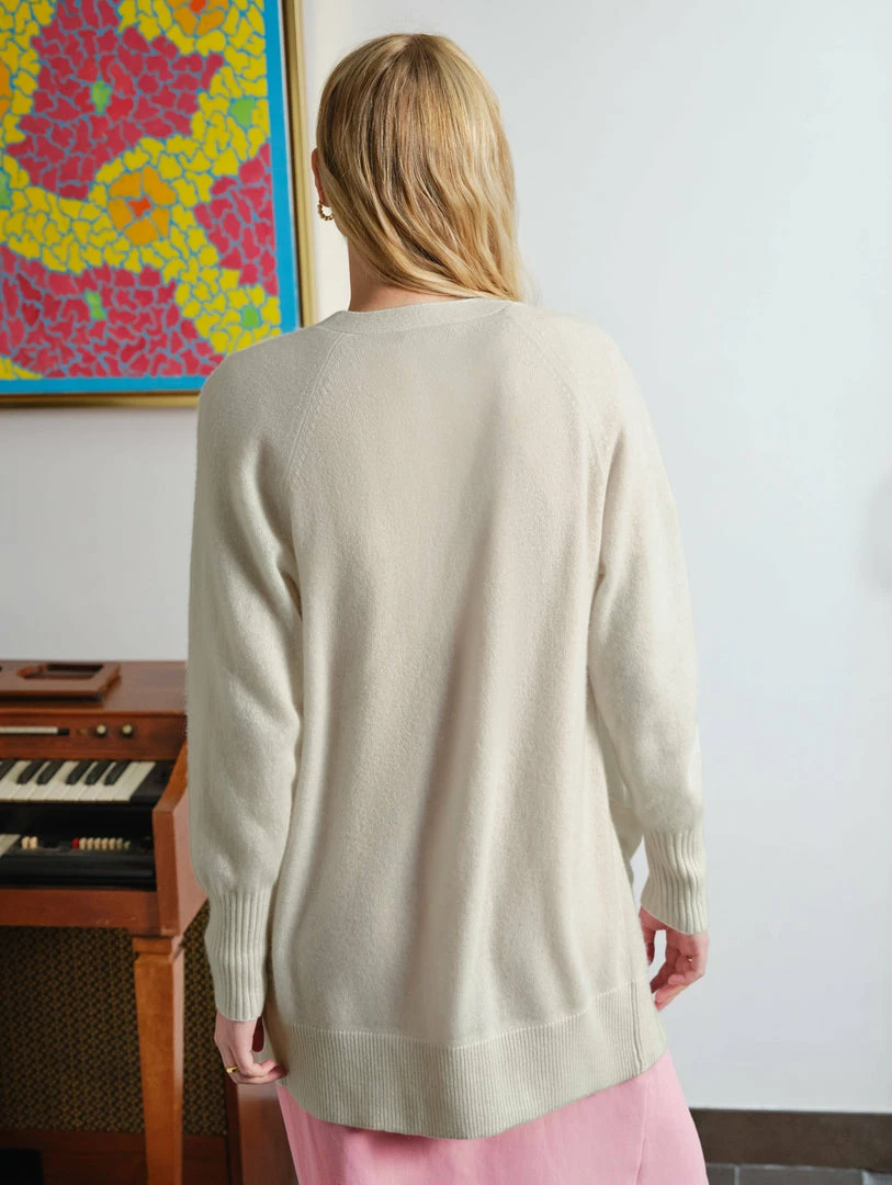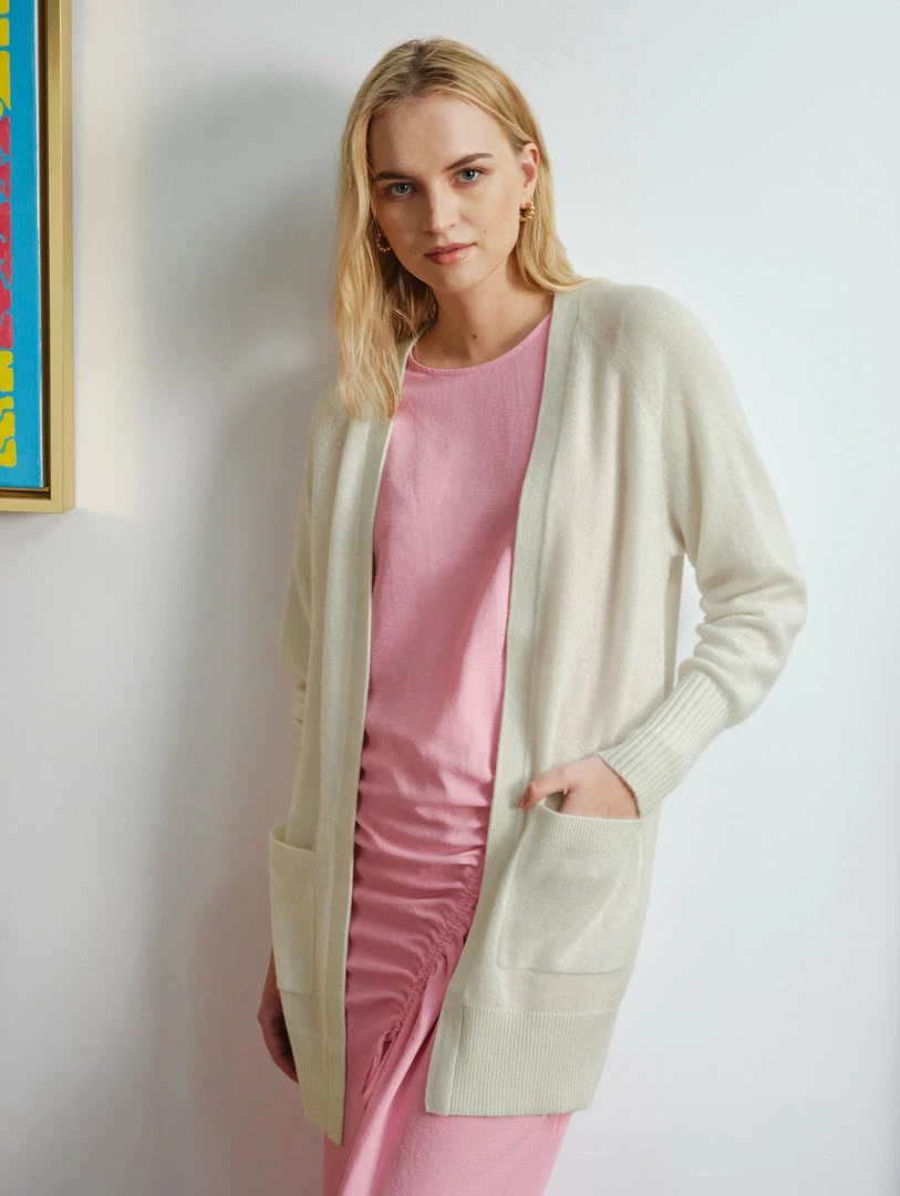 The Cashmere Open Cardigan is a layering piece to reach for day and night. Defined by ribbed trims, the relaxed style features patch pockets perfectly sized to hold your keys and phone. The length is not only flattering on all body types, but acts as a chic jacket alternative during transitional weather. We love wearing it with the Cotton Modal Tank Top.
