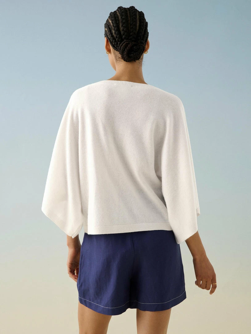 The relaxed drape of our Angled Topper and abbreviated silhouette of our Cropped Trapeze come together to create this modern poncho. Crafted from our signature cashmere and bordered by ribbed trims, it’s the perfect transitional layer. Underpin yours with a tank top, throwing it on over everything from shorts to dresses to wear this season and beyond.