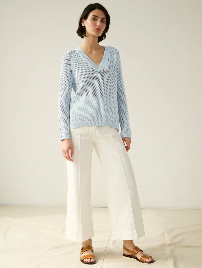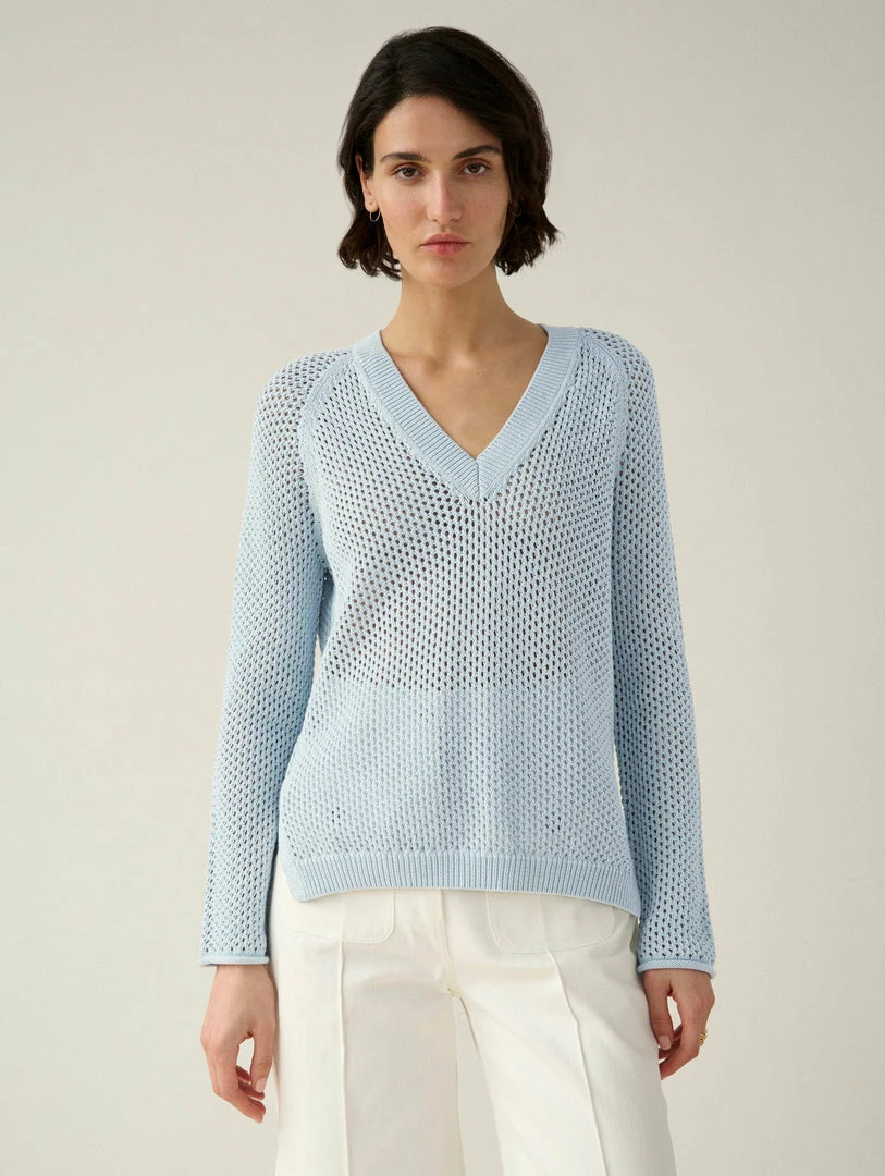Our Cotton Mesh V Neck is spun from mercerized cotton with an open-knit construction, so itโll keep you cool during summer evenings. The split hemline allows for an easeful fit, while also flattering the hips. Whatโs more, the BCI cotton supports more sustainable farming. Wear yours over a tank top on city strolls or as a swimsuit cover-up on beach breaks.
