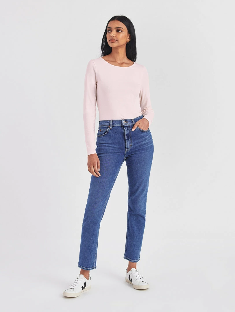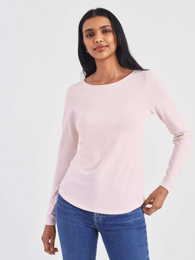 One of our favorite necklines for the season, the boatneck, is offered in our famously soft cotton modal. A best-seller for all seasons, you’ll love this wardrobe basic because of the perfect fit and next-level fabric. Peruvian cotton modal is the ideal weight: it’s substantial with just the right amount of stretch and is ultra soft. Best of all? It’s machine washable, so you can wear, wash, and repeat, and this tee won’t lose its shape.