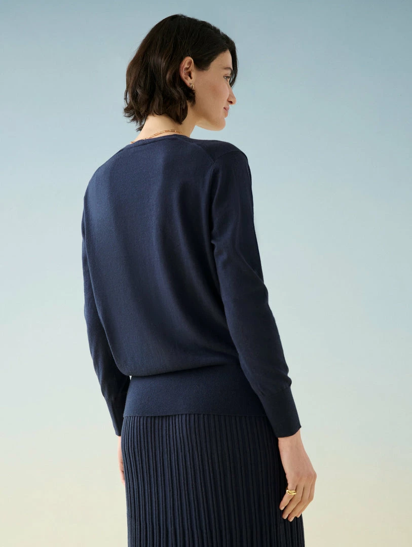 With the structure of a cotton but the fluidity of silk, this sweater is a wardrobe staple to wear now and in-between seasons. It boasts a V-neckline silhouette that’s perfect for displaying statement necklaces, as well as a relaxed fit with ribbed trims. We think it’s just the thing to reach for when you want to be comfortable, but elegant. Style yours with everything from midi skirts to blue jeans alike.
