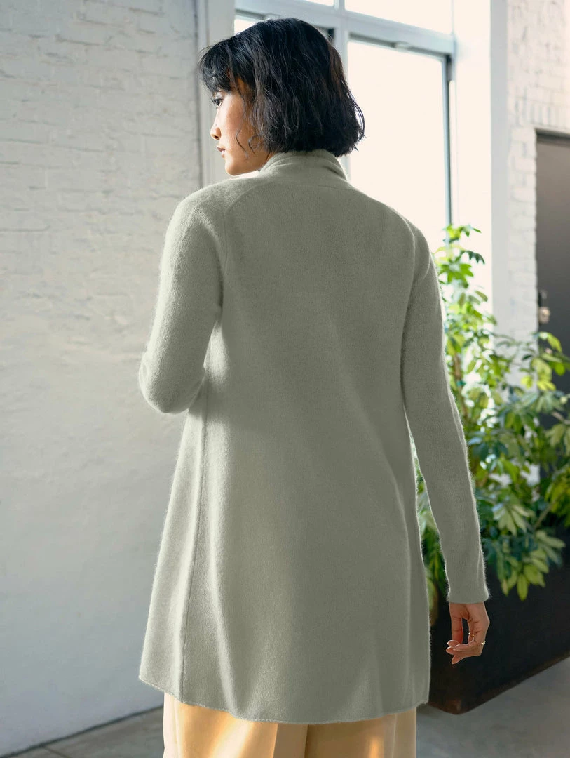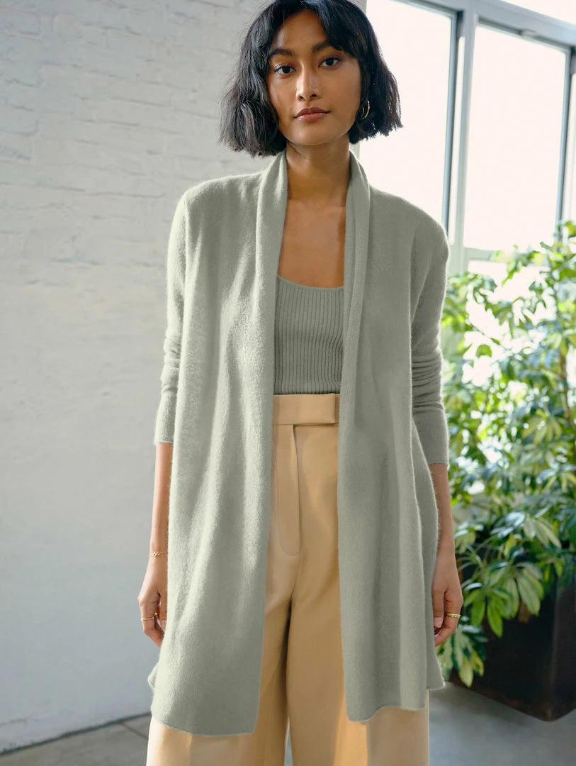 The longest-running piece in our Essentials Collection, the Cashmere Trapeze Cardigan, is a chic fingertip-length open sweater that works on every body type. No matter what color you choose, you’ll want to wear this timeless style season after season.