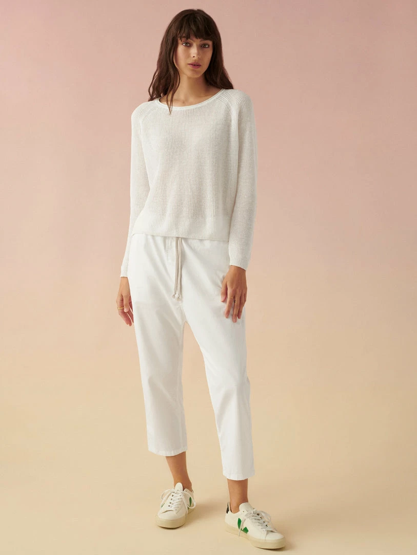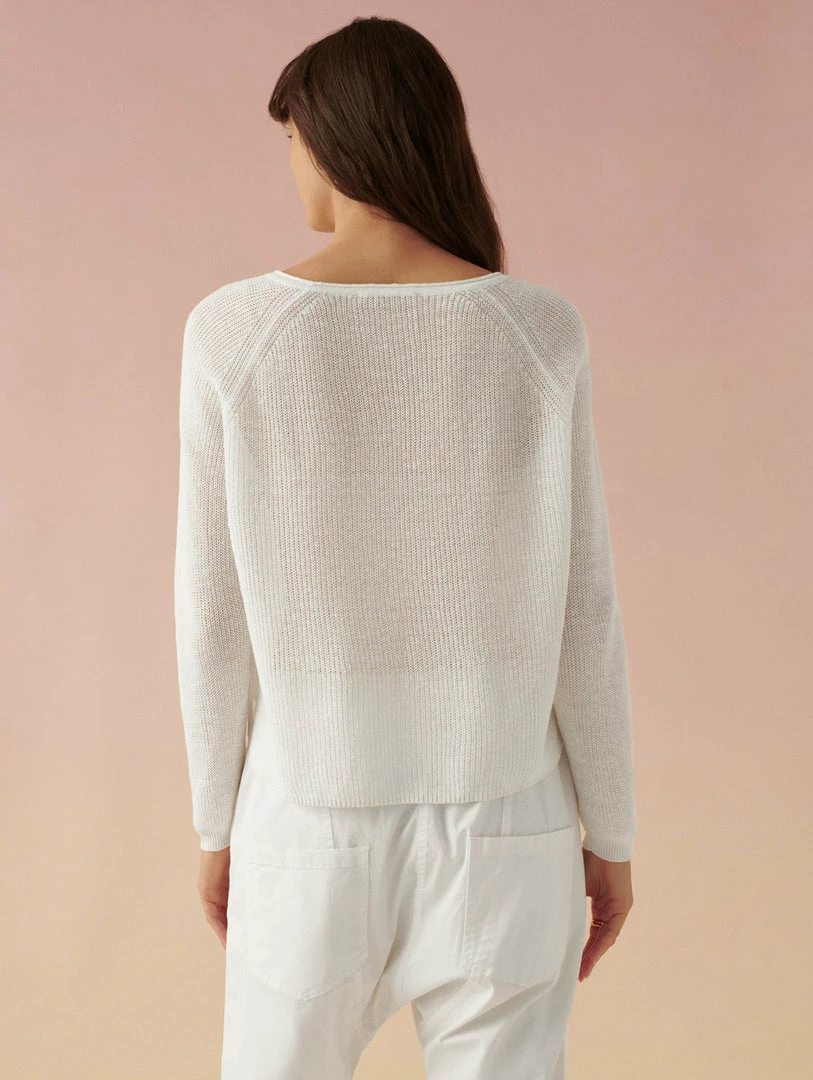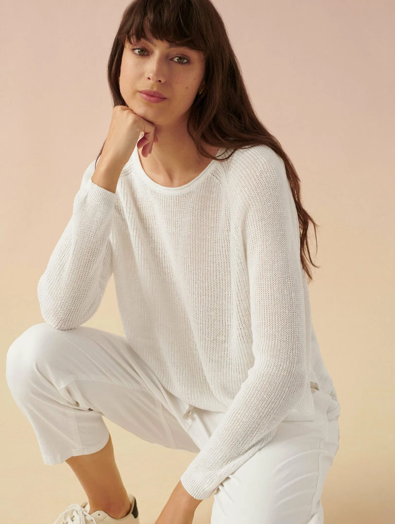 Our newest crewneck is your one-way ticket to breezing through summer. All over ribbing lends polish to the linen sweater, while its shrunken sweatshirt shape pairs perfectly with high-waisted separates. We think it looks equally chic with shorts as it does a skirt.