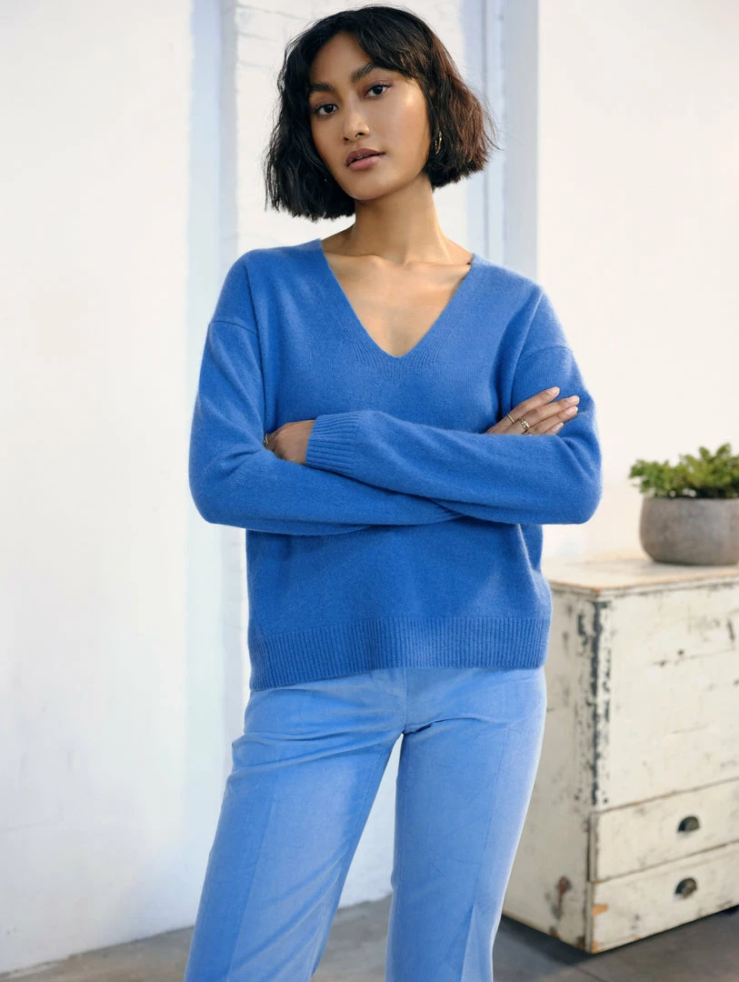 A relaxed cashmere sweater like this Cashmere Relaxed V Neck makes cold weather something to actually look forward to. A clean neckline sets this style apart, not to mention its ribbed trims at the sleeves and hem. The season’s winter-brightening shades work especially well with neutrals and faded denim.