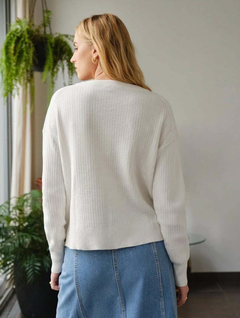 Searching for the perfect transitional sweater? Hitting mid hip, this crewneck was specially designed with an easy throw-on-and-go body. The slightly fitted sleeves ensure the fit remains flattering, while a multi rib pattern subtly elevates the staple style. What’s more, it’s crafted from soft cotton that’s certified by the Better Cotton Initiative (BCI) and blended with COOLMAX® cooling technology.