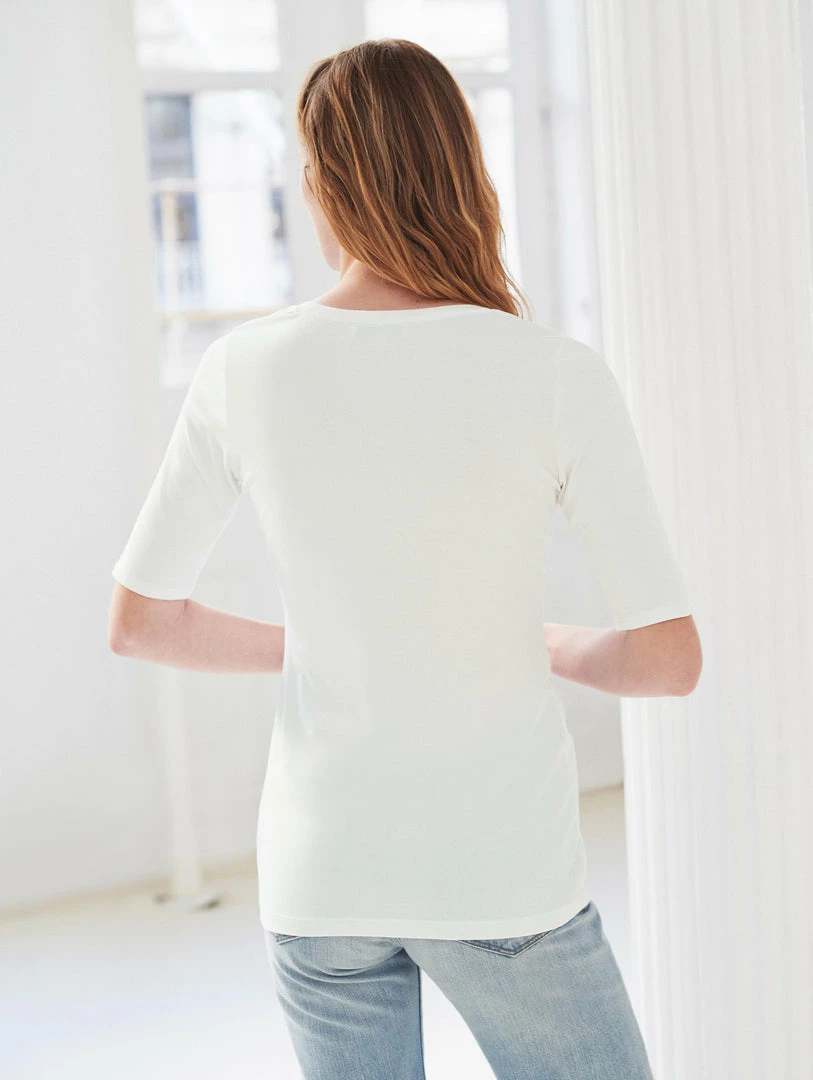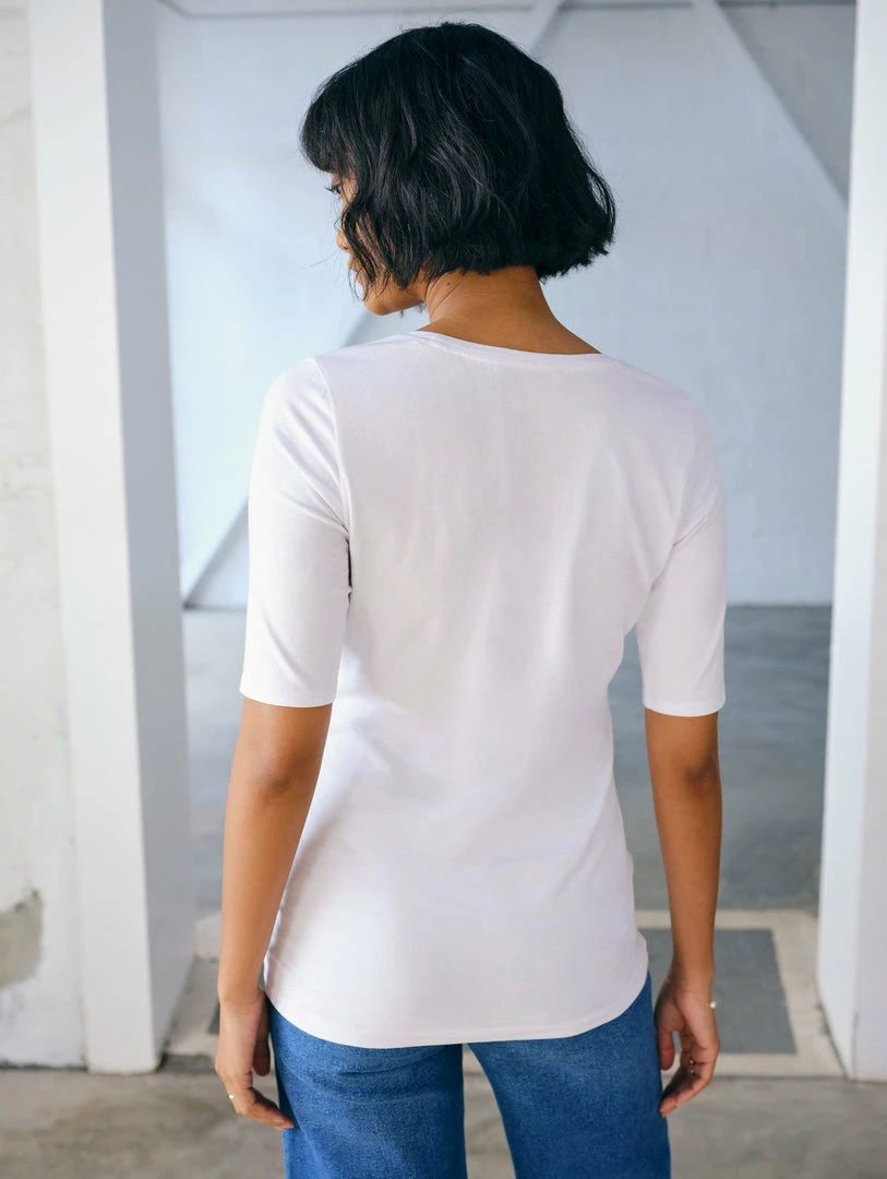 Switch up your tee game with a scoop neck style in a breathable blend of cotton and modal. A best-seller for seasons, you’ll love this wardrobe basic because of the perfect fit and next-level fabric. Peruvian cotton modal is the ideal weight: it’s substantial with just the right amount of stretch and is ultra soft. Best of all? It’s machine washable, so you can wear, wash, and repeat, and this tee won’t lose its shape.